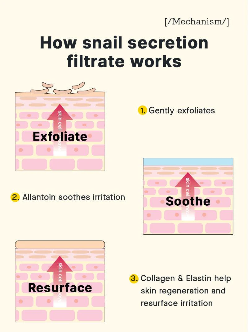 It is seemingly different, but snail secretion and our skin actually has very similar ingredients.