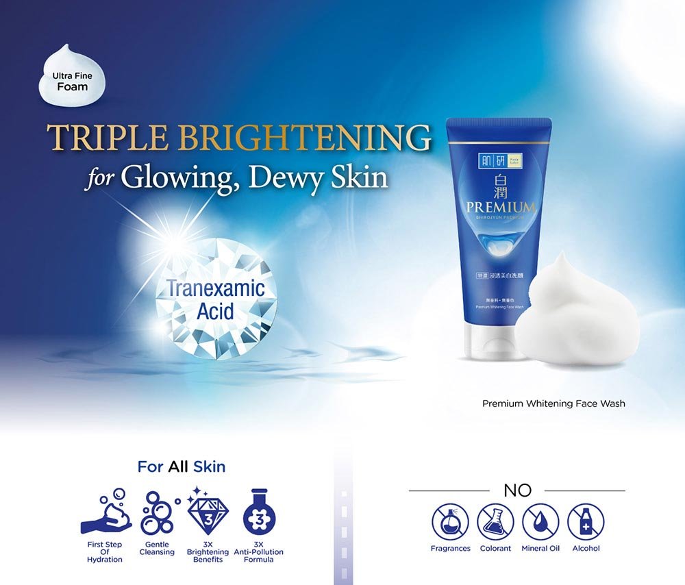 Three types of Hyaluronic Acid provide intense moisture, leaving skin feeling soft, hydrated and more supple after cleansing